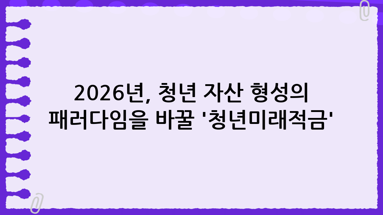 2026년, 청년 자산 형성의 패러다임을 바꿀 '청년미래적금' 완전 분석