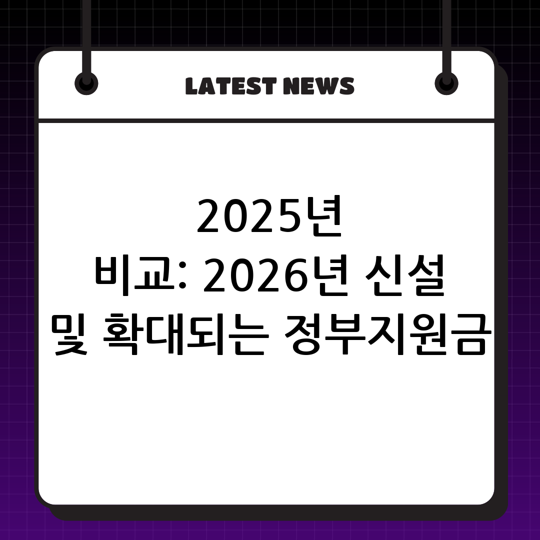 2025년을 지나 2026년을 맞이하면서, 정부는 국민 생활 안정과 미래 대비를 위한 더욱 적극적인 재정 정책을 펼칠 전망입니다. 특히 고물가와 경기 둔화의 부담을 덜고, 사회적 약자를 보호하며 미래 세대의 성장을 지원하기 위한 '생활 밀착형 정부지원금'이 대폭 신설 및 확대됩니다. 2025년의 정책이 기반을 다지는 시기였다면, 2026년은 국민이 변화를 직접 체감할 수 있는 '확장 실행의 해'가 될 것입니다. 본 포스트에서는 수많은 정책 중에서도 우리 삶에 가장 큰 영향을 미칠 2026년 신설 및 확대되는 정부지원금 BEST 7을 2025년과 비교하여 전문가의 시각으로 꼼꼼하게 분석하고, 실생활에 바로 적용할 수 있는 팁까지 제공합니다.