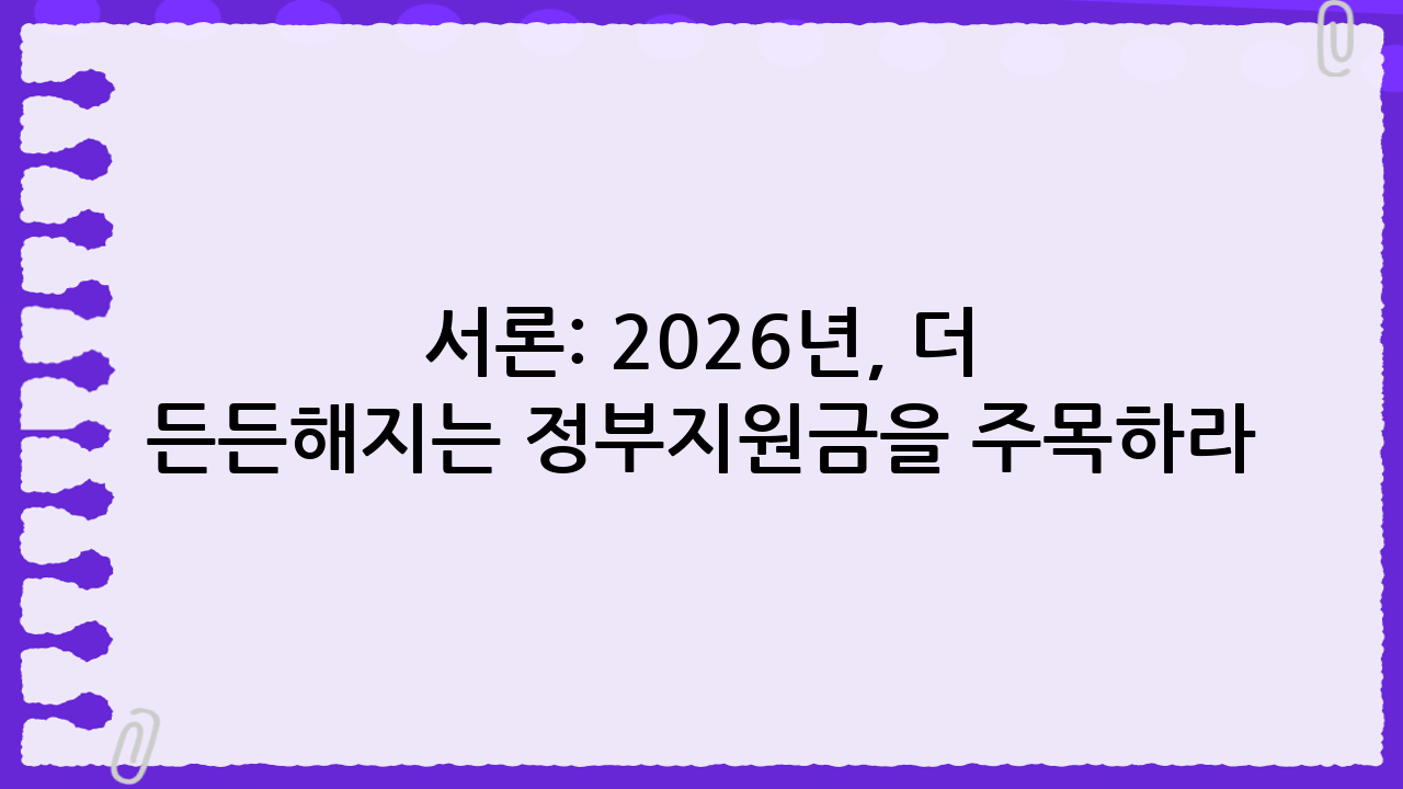 서론: 2026년, 더 든든해지는 정부지원금을 주목하라