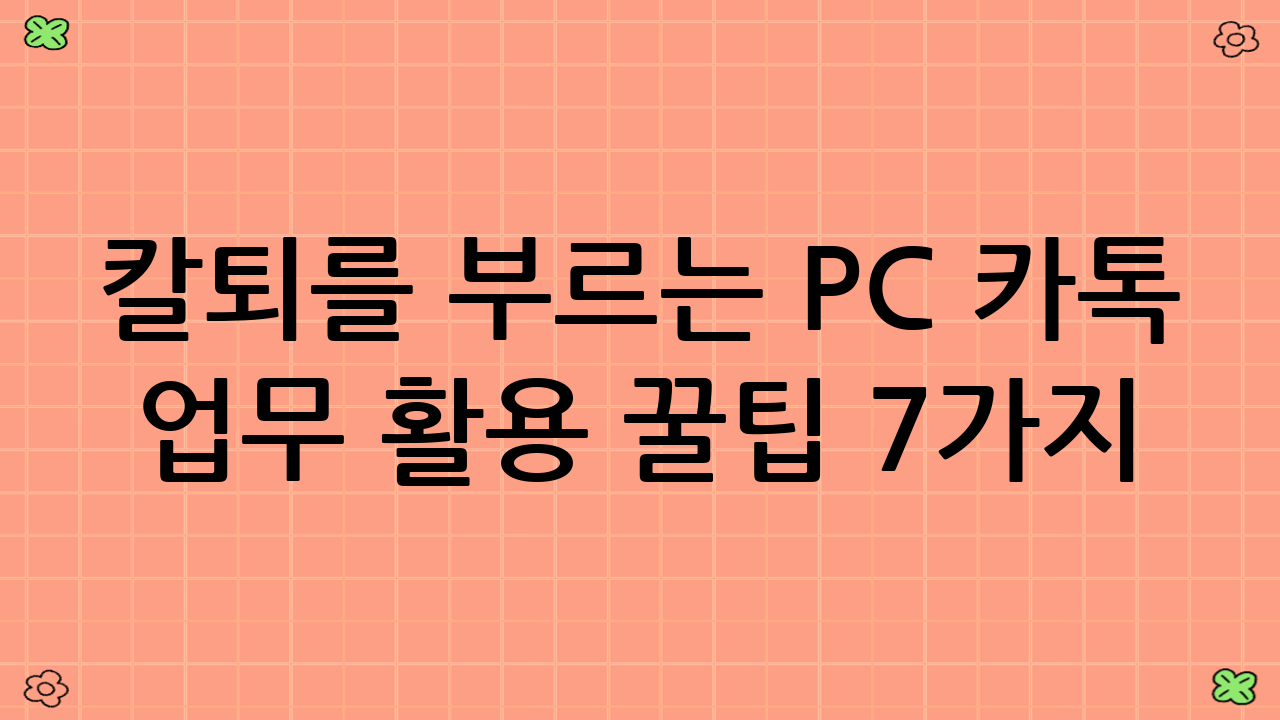 칼퇴를 부르는 PC 카톡 업무 활용 꿀팁 7가지