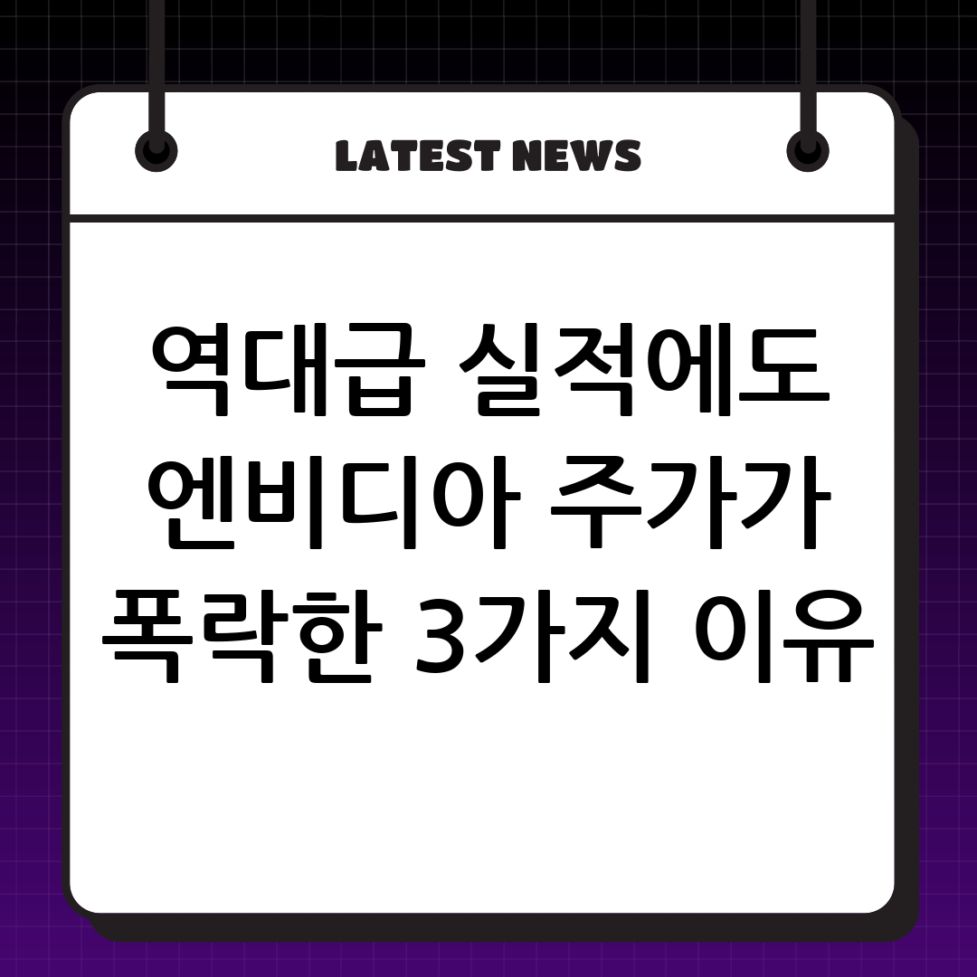 AI 칩 선두주자 엔비디아가 시장 예상을 뛰어넘는 역대급 실적을 발표했음에도 주가는 하락했습니다. 화려한 실적 뒤에 가려진 엔비디아 주가 급락의 진짜 이유 3가지를 심층 분석하고 향후 시장 전망과 투자 전략을 제시합니다.