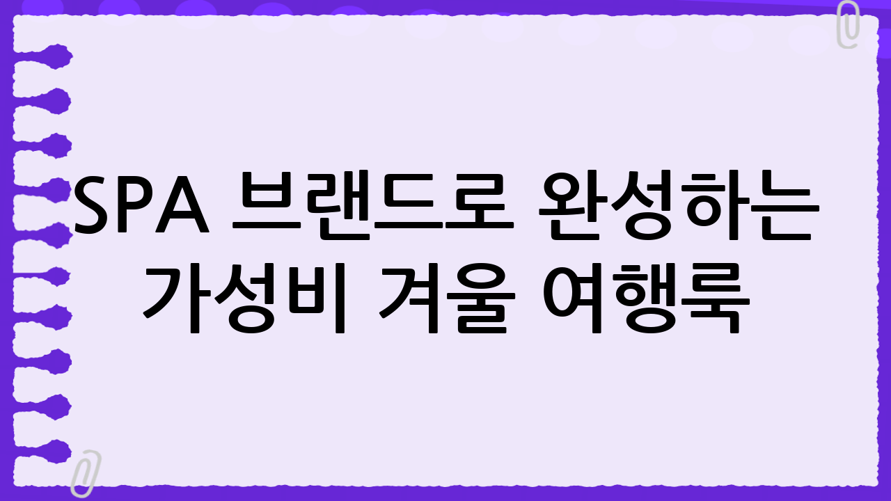 겨울 여행을 위한 옷차림이 더는 부담스러운 숙제가 될 필요는 없습니다. 최신 트렌드와 합리적인 가격을 모두 갖춘 SPA 브랜드를 현명하게 활용한다면 10만원대 예산으로도 충분히 만족스러운 여행룩을 완성할 수 있습니다. 시즌오프 기간을 노리고, 레이어링과 기본 아이템 활용법을 기억한다면 최소한의 비용으로 최대한의 스타일과 보온성을 얻을 수 있을 것입니다. 이제 가벼운 지갑과 마음으로 멋진 겨울 여행을 떠나보세요.