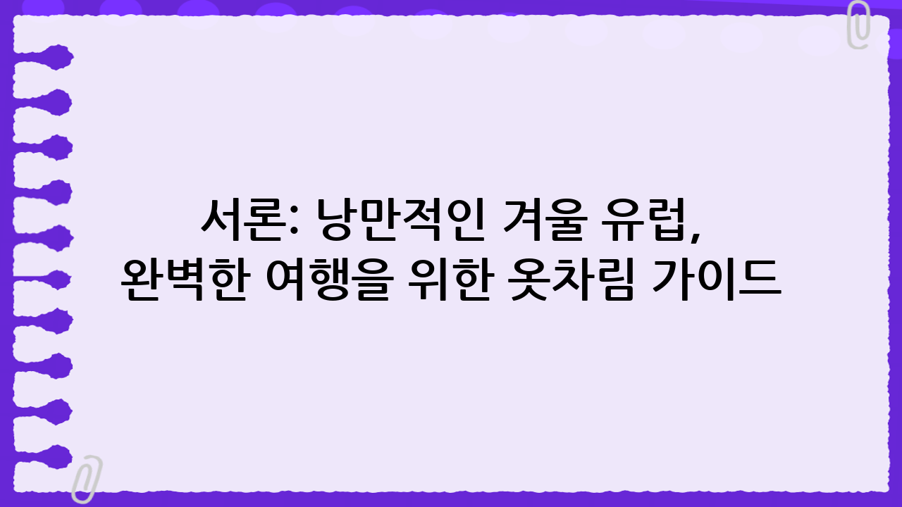 서론: 낭만적인 겨울 유럽, 완벽한 여행을 위한 옷차림 가이드