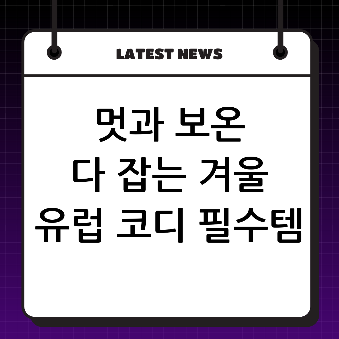 하얀 눈 덮인 유럽의 고풍스러운 거리를 꿈꾸시나요? 낭만적인 겨울 유럽 여행을 성공적으로 즐기기 위해서는 철저한 옷차림 준비가 무엇보다 중요합니다. 변덕스러운 날씨와 강추위 속에서 보온성과 스타일을 모두 만족시키는 겨울 유럽 여행을 위한 필수 코디 아이템 리스트를 전문가의 시각으로 완벽하게 안내해 드립니다. 이 가이드와 함께라면 추위 걱정 없이 최고의 추억을 만들 수 있을 것입니다.