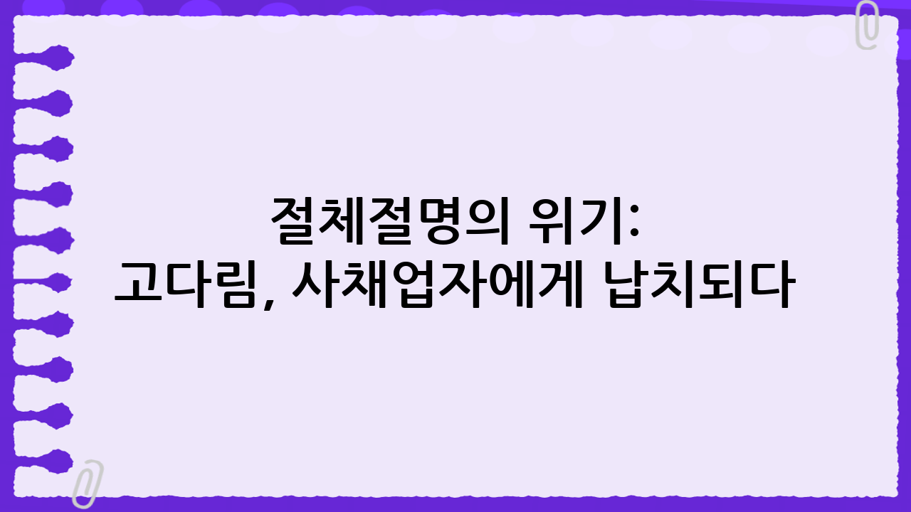 절체절명의 위기: 고다림, 사채업자에게 납치되다