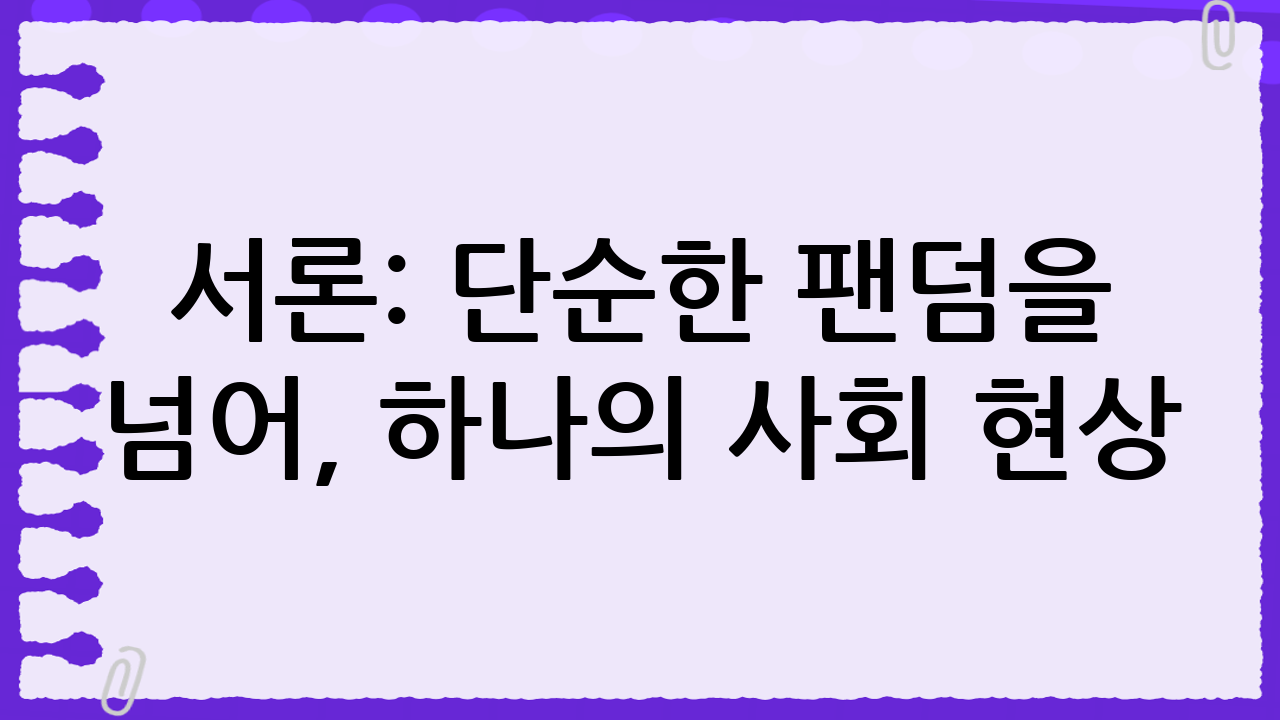 서론: 단순한 팬덤을 넘어, 하나의 사회 현상