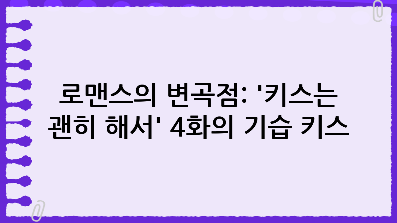 로맨스의 변곡점: '키스는 괜히 해서' 4화의 기습 키스