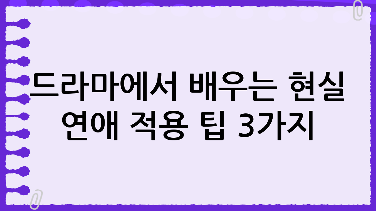 드라마에서 배우는 현실 연애 적용 팁 3가지