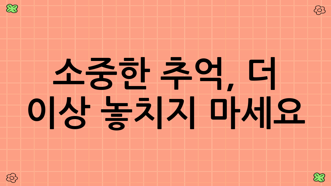 지금까지 카카오톡 사진과 동영상을 영구적으로 저장하고 스마트폰 저장 공간을 확보하는 방법을 알아보았습니다. 가장 간편하고 확실한 방법은 '톡서랍 플러스'를 활용하는 것이며, 상황에 따라 PC를 활용하거나 수동으로 저장하는 방법을 선택할 수 있습니다. 더 이상 소중한 순간들이 담긴 사진과 영상이 만료되어 사라지기 전에, 자신에게 맞는 방법을 선택하여 안전하게 보관하고 쾌적한 스마트폰 환경을 만드시길 바랍니다.
