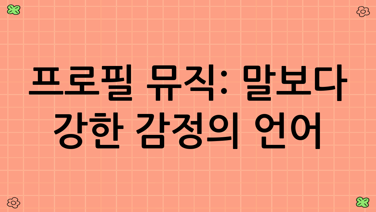 프로필 뮤직은 현재의 기분과 감정 상태를 가장 잘 드러내는 요소 중 하나입니다. 어떤 장르의 음악을 선택했는지에 따라 그 사람의 숨겨진 심리를 파악할 수 있습니다.