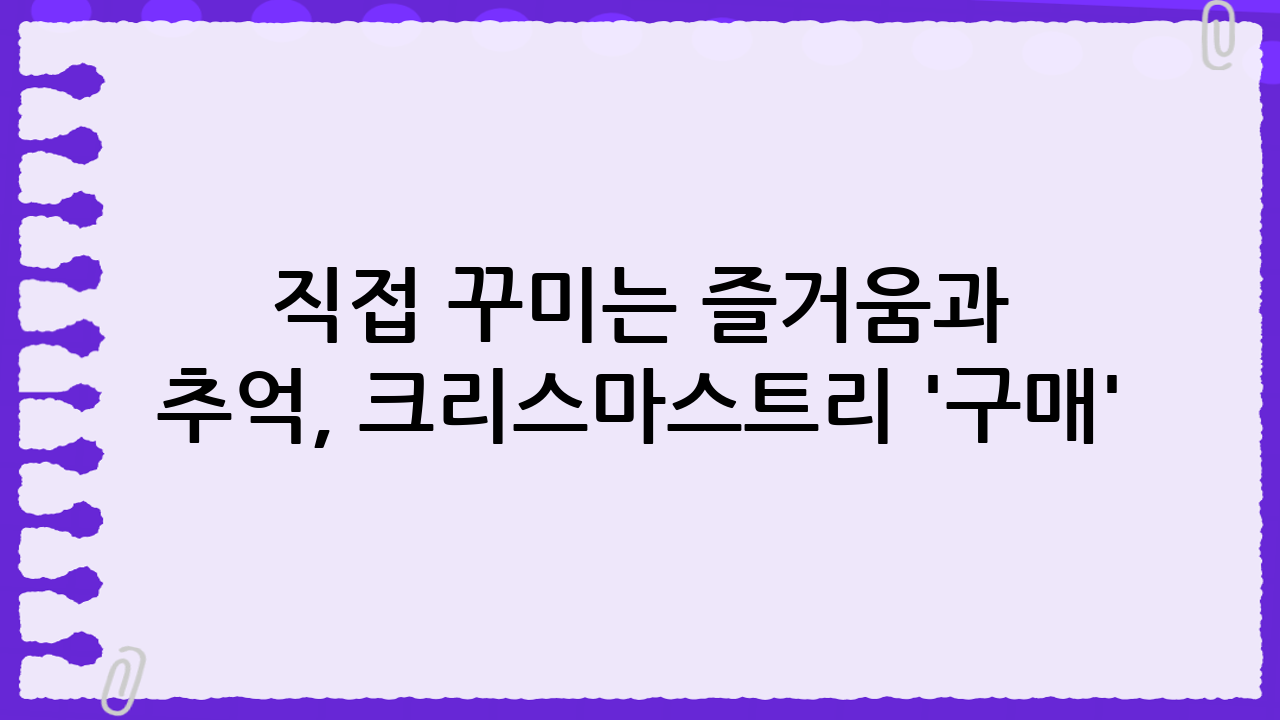 크리스마스트리를 직접 구매하는 것은 단순히 장식품을 사는 것 이상의 의미를 가집니다. 우리 집만의 특별한 크리스마스 전통을 만드는 첫걸음이 될 수 있습니다.