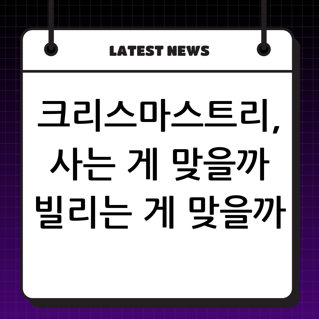 어느덧 찬 바람과 함께 설레는 크리스마스 시즌이 다가왔습니다. 반짝이는 조명과 흥겨운 캐럴 속에서 크리스마스 분위기를 완성하는 가장 중요한 아이템은 바로 크리스마스트리일 것입니다. 하지만 매년 이맘때가 되면 우리는 고민에 빠집니다. "크리스마스트리, 사는게 나을까 빌리는게 나을까?" 이 질문에 대한 정답을 찾기 위해, 크리스마스트리 구매와 렌탈의 장단점을 심층적으로 분석해보고 여러분의 라이프스타일에 맞는 최적의 선택을 도와드리겠습니다.