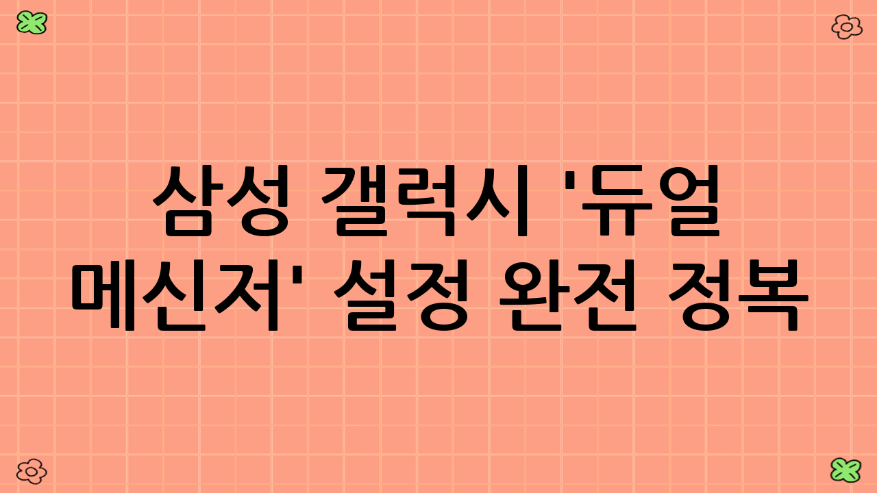 삼성 갤럭시 '듀얼 메신저' 설정 완전 정복
