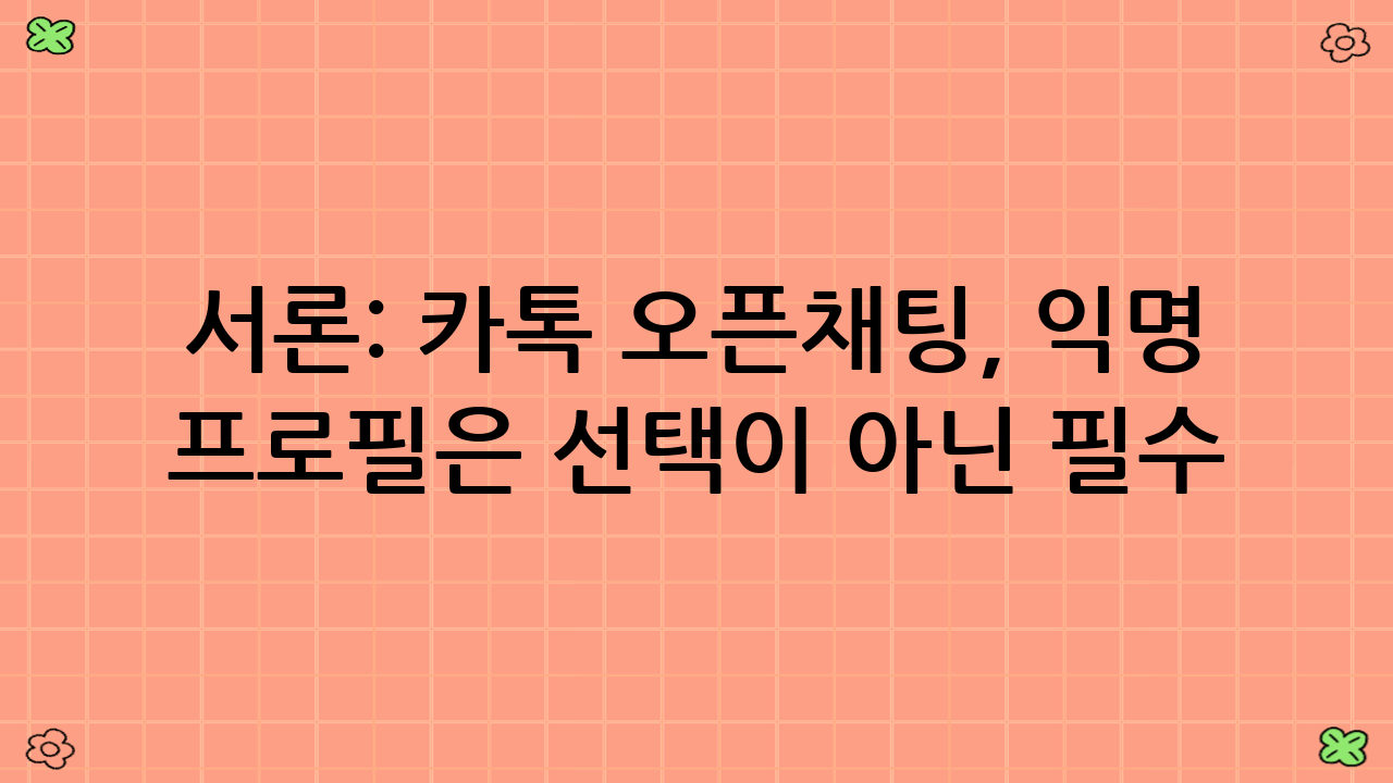 서론: 카톡 오픈채팅, 익명 프로필은 선택이 아닌 필수
