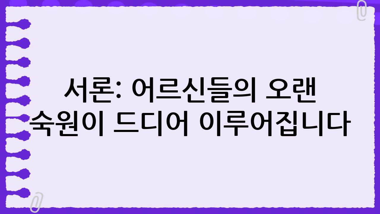 서론: 어르신들의 오랜 숙원이 드디어 이루어집니다