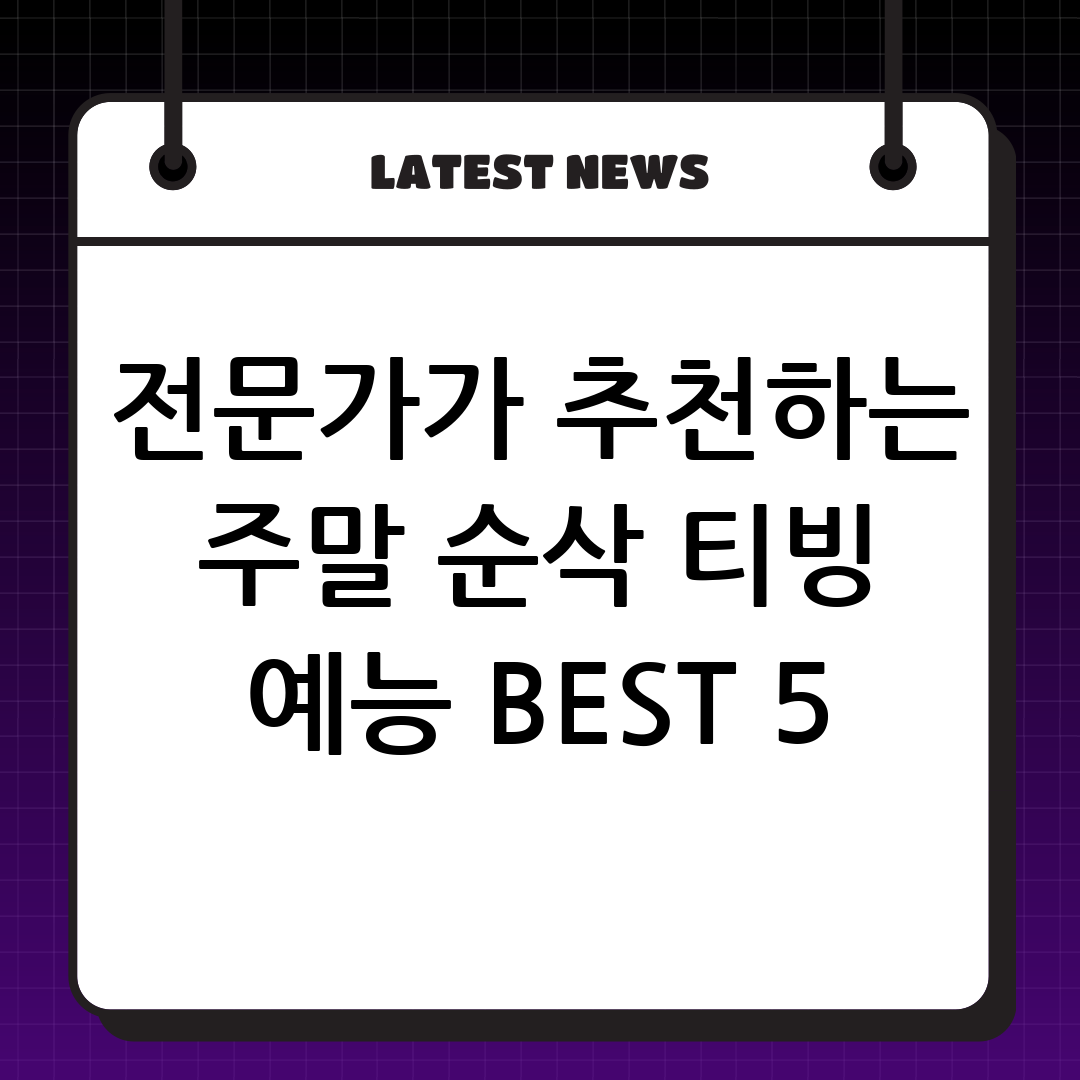 어느덧 한 주가 저물고 꿀 같은 주말이 코앞으로 다가왔습니다. 분주했던 일상에서 벗어나 온전한 휴식을 취하고 싶지만, 막상 무엇을 해야 할지 막막하게 느껴질 때가 많습니다. 이럴 때 필요한 것은 바로 시간 가는 줄 모르는 몰입감을 선사할 ‘웰메이드 콘텐츠’입니다. 수많은 OTT 플랫폼 속에서 독보적인 오리지널 콘텐츠로 두각을 나타내는 티빙(TVING)은 당신의 주말을 완벽하게 책임질 준비가 되어있습니다. 전문가의 시선으로 엄선한, 당신의 시간을 ‘순삭’시킬 티빙 오리지널 예능 추천 BEST 5를 지금부터 소개합니다.
