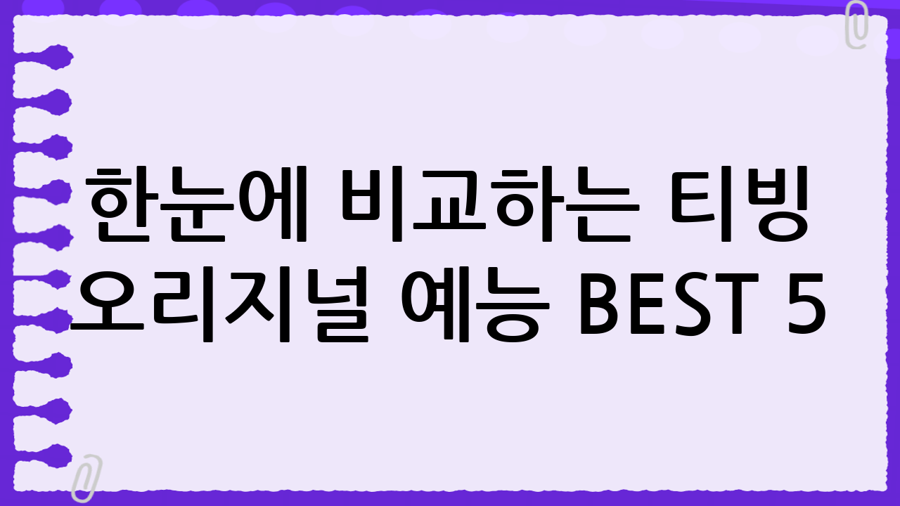 한눈에 비교하는 티빙 오리지널 예능 BEST 5