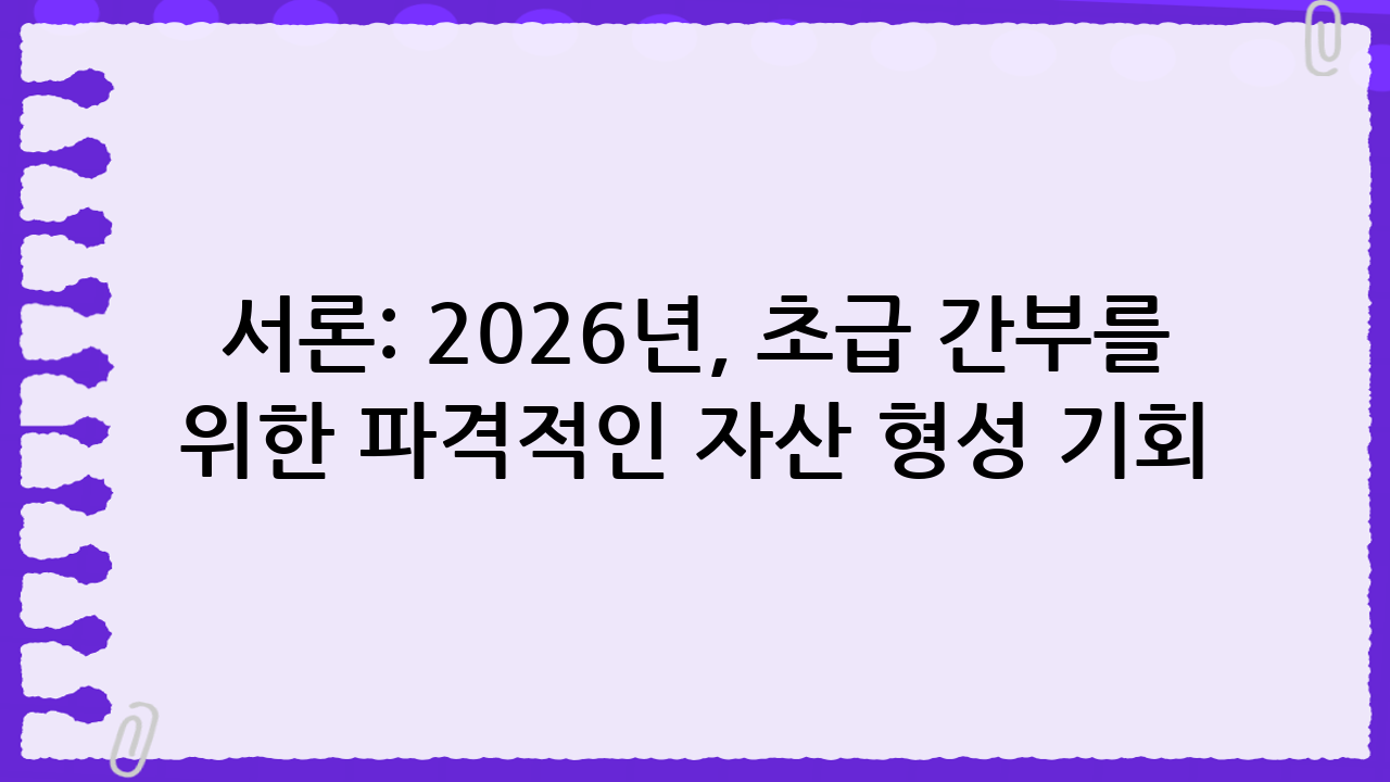 서론: 2026년, 초급 간부를 위한 파격적인 자산 형성 기회