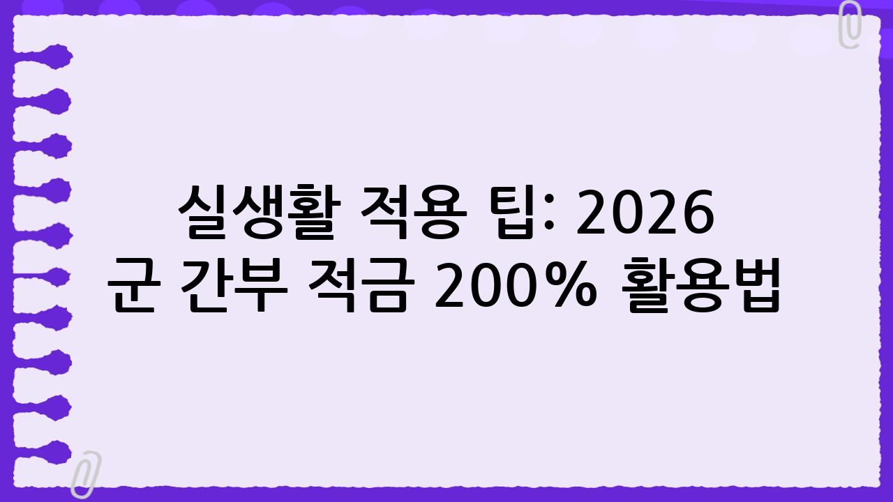 실생활 적용 팁: 2026 군 간부 적금 200% 활용법