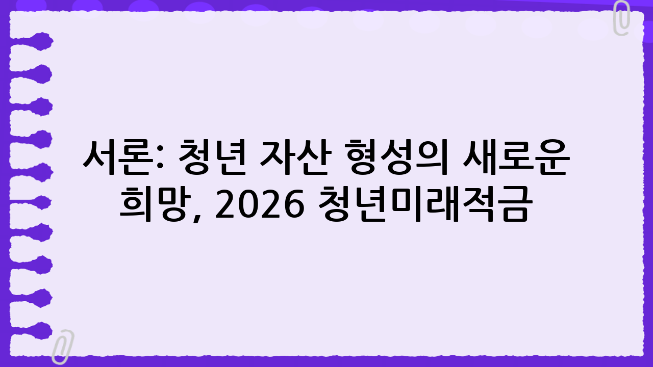 서론: 청년 자산 형성의 새로운 희망, 2026 청년미래적금