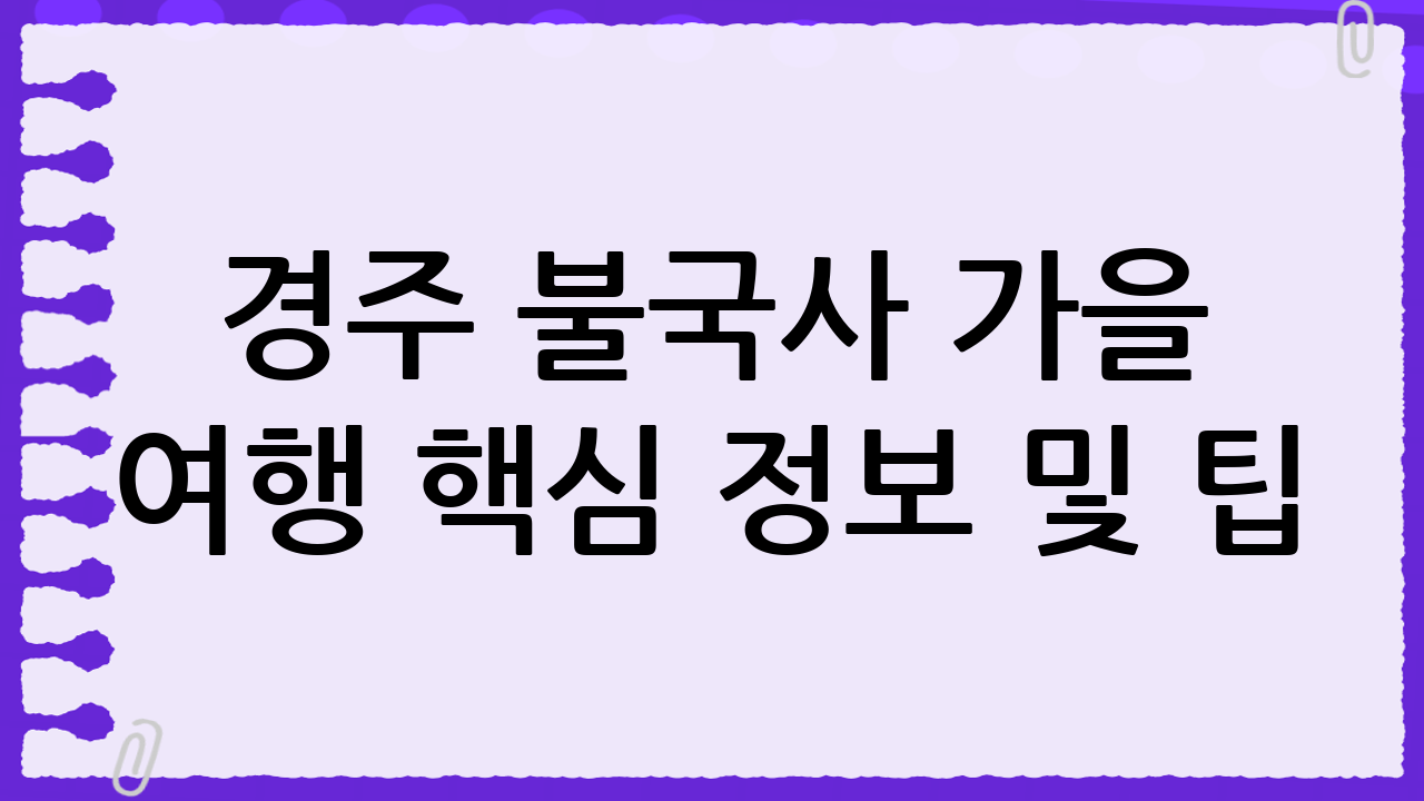 아름다운 불국사의 가을을 제대로 즐기기 위해서는 몇 가지 알아두면 좋은 정보들이 있습니다. 아래 표와 팁을 참고하여 더욱 알찬 여행을 계획해 보세요.