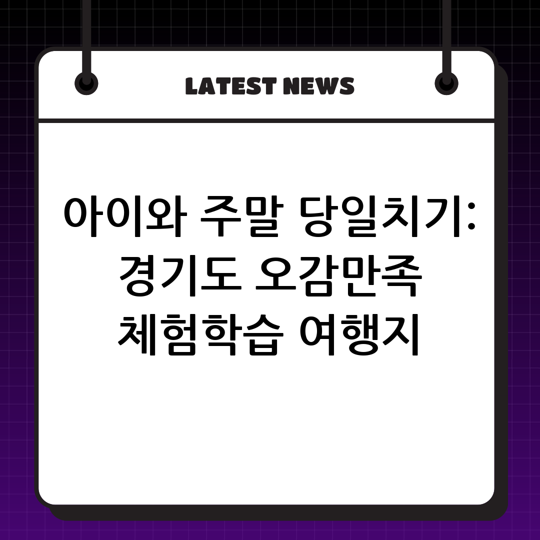 아이와 주말 당일치기 여행은 아이에게는 새로운 세상을 경험하는 기회가, 부모에게는 잠시나마 육아의 스트레스에서 벗어나 아이와 교감하는 소중한 시간이 될 것입니다. 이번 주말, 아이 손을 잡고 오감이 즐거운 경기도 체험학습 여행을 떠나보세요. 매일 육아에 최선을 다하는 모든 부모님을 응원합니다!