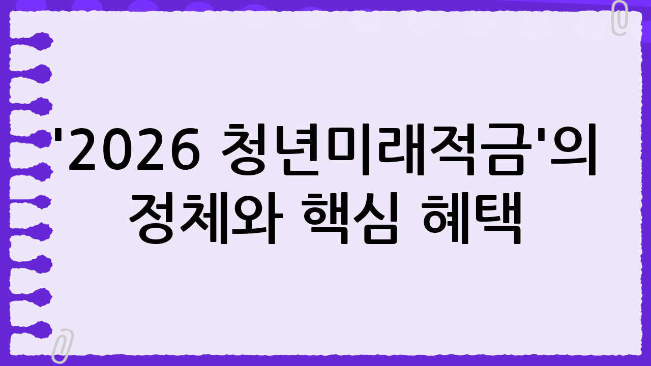 '2026 청년미래적금'의 정체와 핵심 혜택