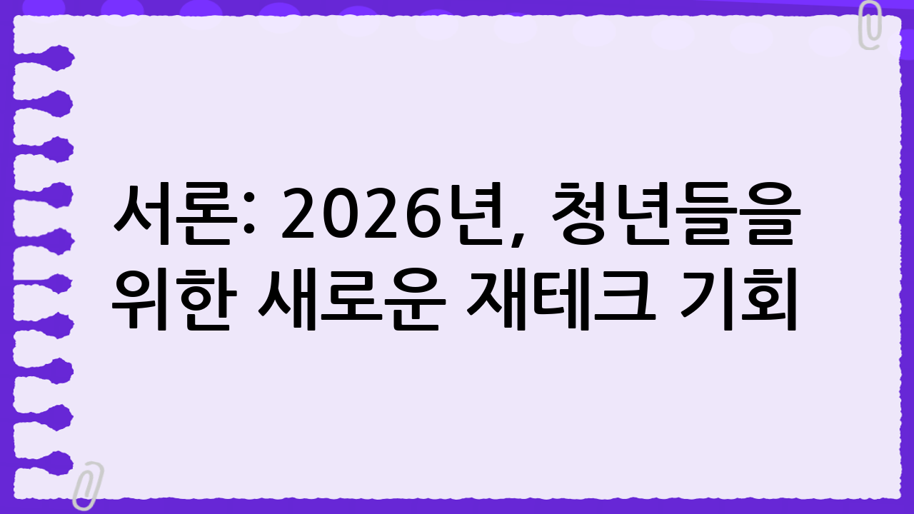 서론: 2026년, 청년들을 위한 새로운 재테크 기회